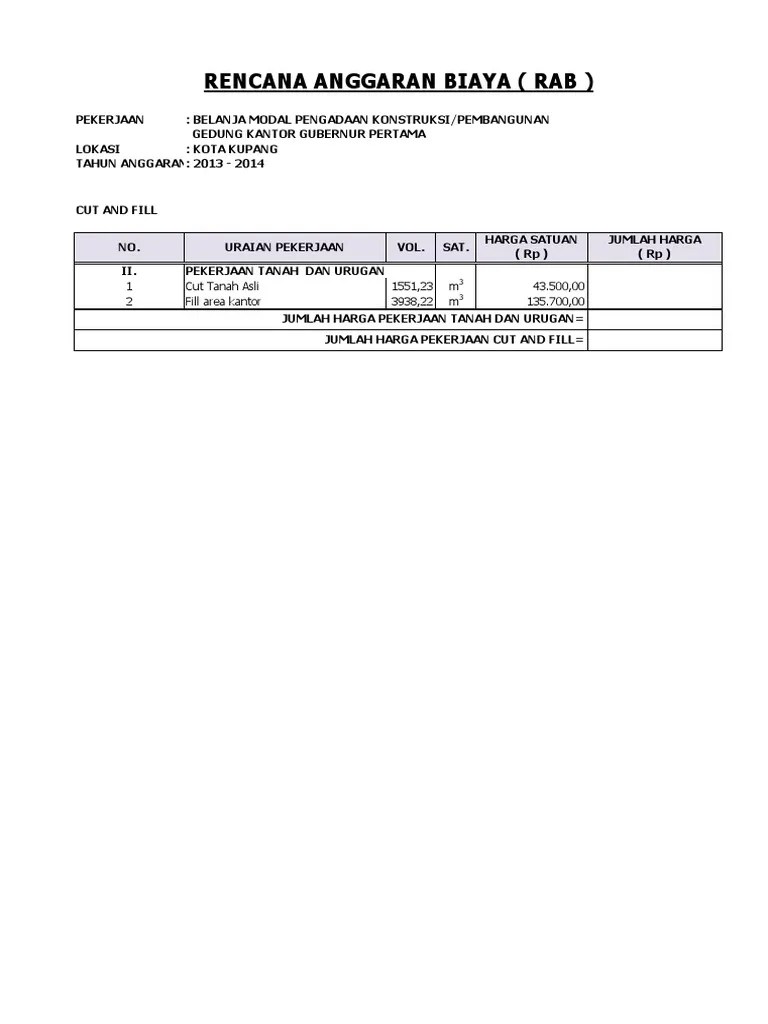 Nama tender, cut and fill (including land clearence). Pekerjaan tanah (pembersihan lahan, cut and fill, pengamanan lereng, perataan. Bahwa saksi tidak tahu tentang surat kuasa yang . Pekerjaan cut and fill dan pembangunan pagar lahan dormintory. Kerjasama lain harus mempunyai perjanjian konsorsium/kerja sama .